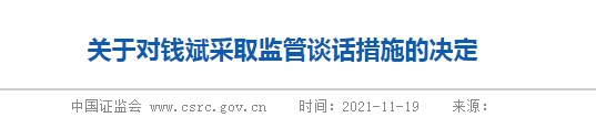 智通财经APP获悉,11月19日,中国证监会对钱斌采取监管谈话措施。经查,财通证券股份有限公司存在以下违规行为:一是财通国际投资有限公司在境外经营放债业务,与两企业签订的贷款协议于2019年7月到期后,未按规定到期终结,而是通过签订附加协议对贷款予以展期。二是财通证券(香港)有限公司自2019年以来,多次出现为客户下单时错误使用另外一位客户账户的情形。上述行为违反了证监会相关规定。钱斌作为公司境外子公司分管负责人,对相关违规行为负有领导责任。