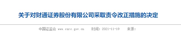 证监会提出:财通证券应当采取有效措施,完善内部管理,提升风控水平,并于收到本决定之日起3个月内向浙江证监局提交整改报告。