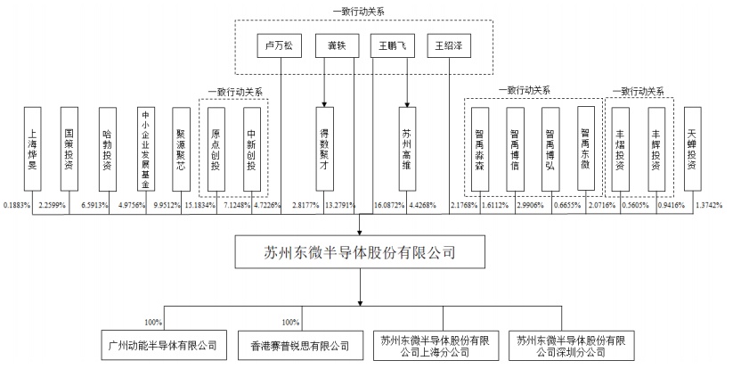此外,直接持有东微半导体5%以上股份的股东还包括聚源聚芯(9.95%)、中新创投(7.12%)和哈勃投资持有公司(6.59%)。据悉,国家集成电路产业投资基金股份有限公司(简称“国家大基金”)还是聚源聚芯的有限合伙人,而华为则持有哈勃投资100%的股权。
