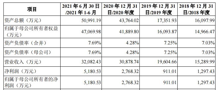 此外,由于主要侧重于研发环节,该公司的研发人员占比也比较高——截至2021年6月30日,研发人员合计31人,占员工比例46%。而2018年至2021年6月30日,该公司的研发投入费用则分别为1603.83万元、1202.58万元、1599.36万元和1650.12万元。