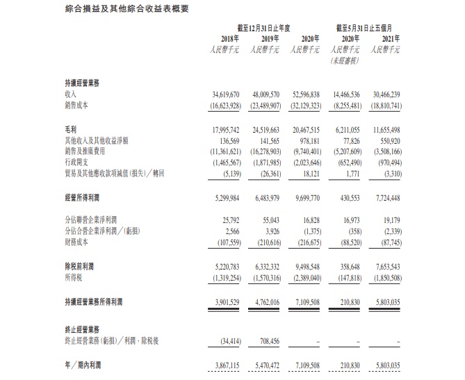 于2018年、2019年、2020年及截至2021年5月31日止五个月,中国中免的收入分别为人民币346.20亿元、480.10亿元、525.97亿元及304.66亿元。同期,公司的净利润分别为38.67亿元、54.70亿元、71.10亿元及58.03亿元。由2018年至2020年,中国中免的收入按复合年增长率23.3%增长,而其净利润则按复合年增长率35.6%增长。