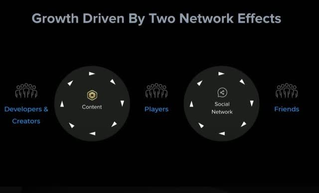 作为全球最大的游戏UGC平台,Roblox平台通过内容以及社交网络进行有机增长。