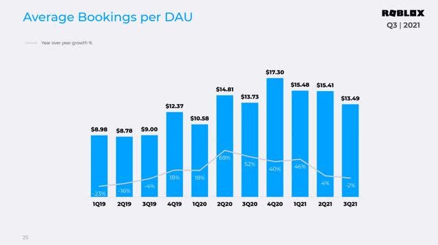 该公司三季度财报显示,日活跃用户数(DAU)平均为4730万,同比增长31%,是2019年同期的2.6倍;每日活跃用户平均预订量(ABPDAU)为13.49美元,用户参与小时数为112亿,同比增长28%;全球各个年龄段的用户在该平台上总计投入了112亿小时,同比增长28%,较2019年同期增长3倍。
