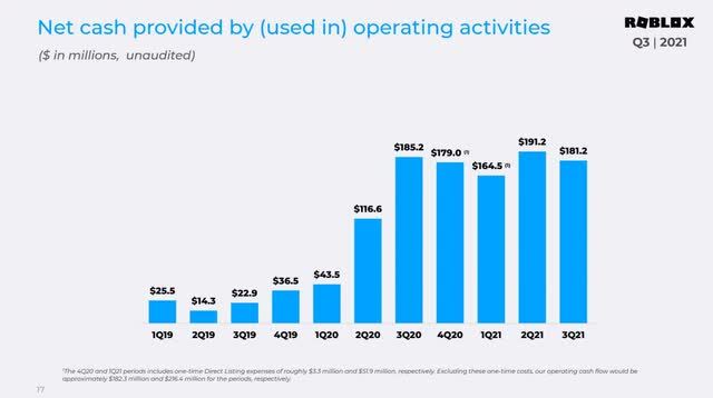 Roblox目前拥有非常稳固的资产负债表和正向现金流,这表明该公司有能力为其发展计划提供资金。