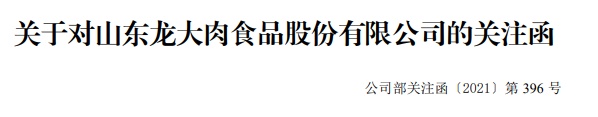 深交所提出,请龙大肉食就上述问题做出书面说明,并于2021年11月25日前将有关说明材料报送深交所上市公司管理一部并对外披露,同时抄送派出机构。