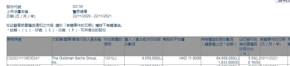 智通财经APP获悉,香港联交所最新资料显示,11月16日,高盛减持医思健康(02138)955.8万股,每股作价11.8港元,总金额约为1.13亿港元。减持后最新持股数目为6468.808万股,最新持股比例为5.5%。