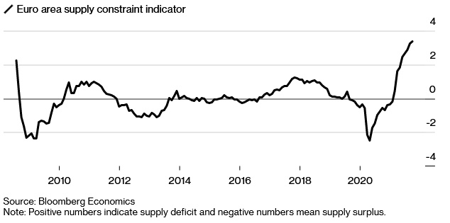 与美国相反,在欧元区,供应短缺的情况仍在恶化,并推动欧元区10月份通胀率升至4.1%,创下20年来的最高水平。
