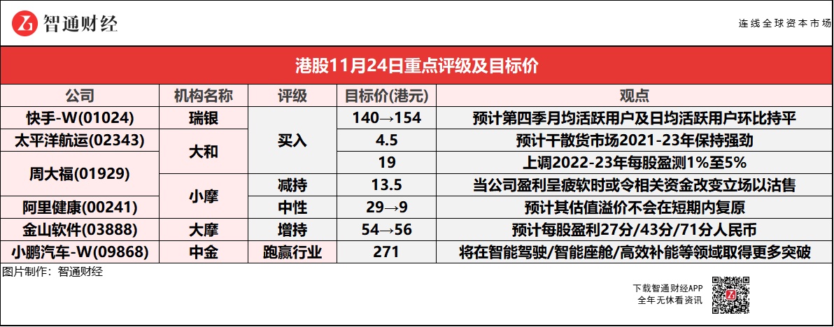 该行预计,快手第四季月均活跃用户及日均活跃用户环比持平;电子商务业务增长将维持强劲,直播业务稳定。展望未来,公司管理层仍对日均活跃用户达4亿的长期目标有信心,预期国内业务将在2022年实现收支平衡,长期经营利润率目标为20%至25%。