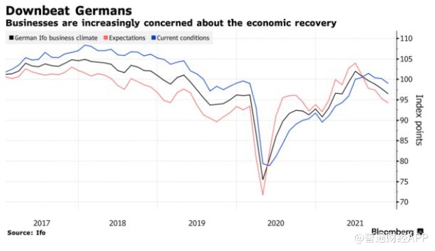 德国Ifo研究所总裁 Clemens Fuest 表示:“瓶颈仍然是一个问题,除此之外,我们现在暴发了非常严重的疫情。” “我们从数据中非常清楚地看到,这也让公司感到担忧。对服务业的期望正在迅速下降,特别是在酒店和旅游业。”