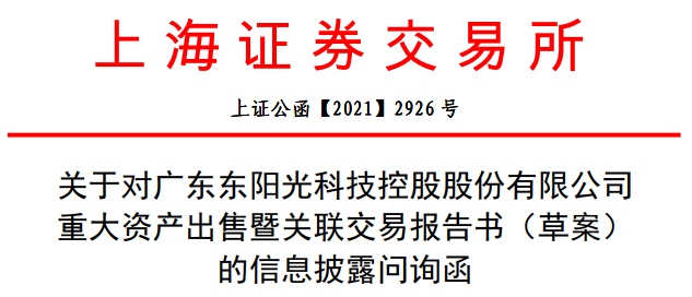 上交所指出,请东阳光收到本问询函后立即对外披露,并在五个交易日内针对上述问题书面回复上交所,并对重大资产出售暨关联交易草案作相应修改。