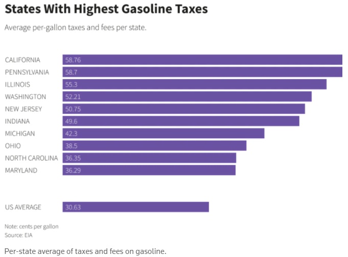 OPIS全球能源分析部门的主管Tom Kloza表示,消费者要为混合乙醇和其他添加剂以及分销和营销支付额外的费用,而这些成本已经大幅上升。值得一提的是,油价中大约17%的成本来自税收,其中联邦汽油税是18美分,不同州所征收税费不同,据统计,每个州的平均税费是30美分。
