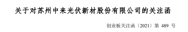 深交所提出,请中来股份就上述事项做出书面说明,在2021年12月2日前将有关说明材料报送深交所并对外披露,并抄送江苏证监局上市公司监管处。