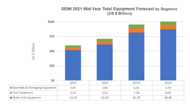 SEMI2021年终按细分市场划分的设备总量预测