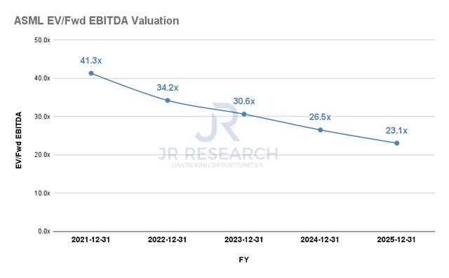 阿斯麦EV/Fwd EBITDA 估值趋势