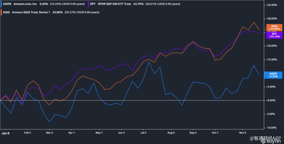 智通财经APP获悉,自去年8月20日以来,亚马逊(AMZN.US)一直处于波动之中。在此期间,其他FAANG股票表现良好,但亚马逊的股票却不受投资者青睐。