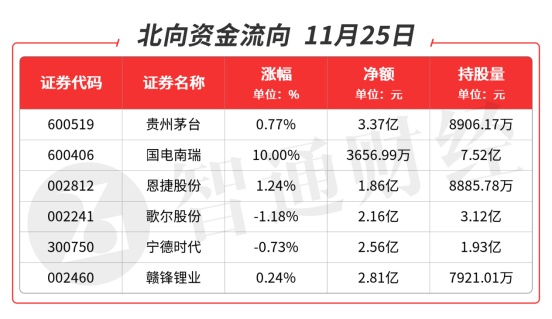 北向资金全天净流入11.72亿元,买入的品种主要集中在白酒、特高压、电子及锂电池类。重点品种如下图: