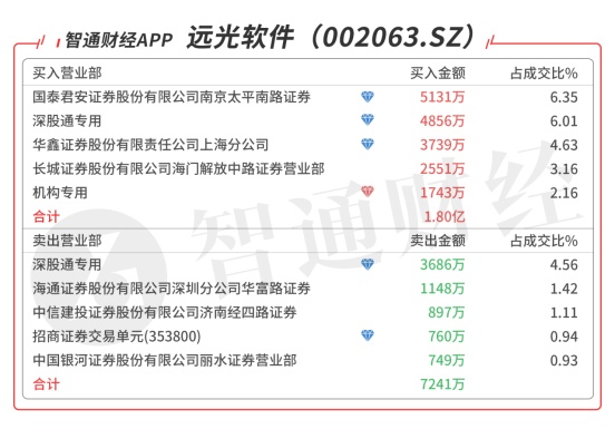 远光软件(002063.SZ):受到众多机构青睐,机构席位买入1743万元,深股通对倒净买入1170万元,买一是知名游资作手新一的席位买入5131万元,买三是知名游资的席位买入3739万元,当日净买入1.14亿元,该股今日放量突破年线强势涨停,21预计有溢价。