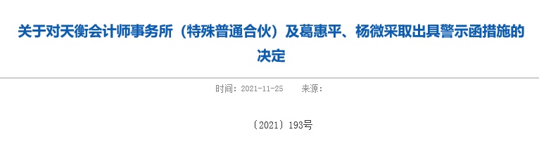 智通财经APP获悉,11月25日,北京证监局对天衡会计师事务所(特殊普通合伙)及葛惠平、杨微采取出具警示函。经查,上述对象在北京捷成世纪科技股份有限公司(捷成股份,300182.SZ)2020年度财务报表审计项目(报告文号为天衡审字〔2021〕01261号)执业中,在风险评估、控制测试、大额采购合同审计、货币资金和应收账款实质性程序、财务报表列报、项目质量控制复核六个方面存在问题,相关行为违反规定。