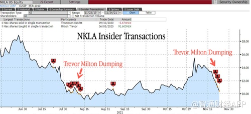 美国SEC文件显示,自8月以来,米尔顿已经抛售了总计2.84亿美元的Nikola股票。