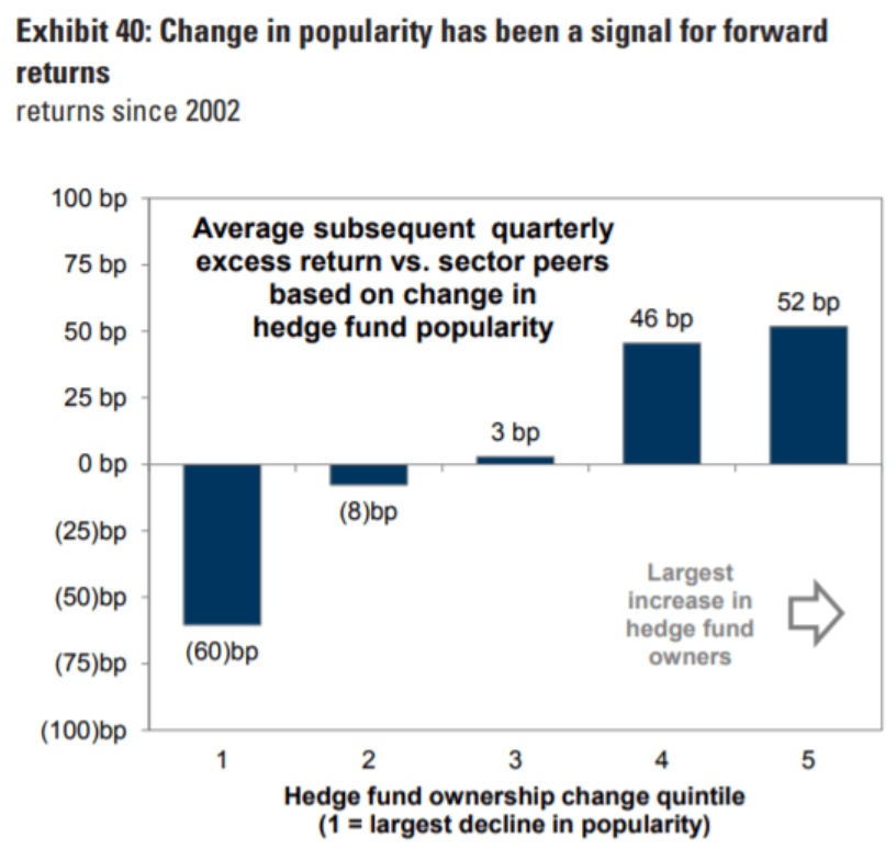 智通财经APP获悉,高盛策略师Ben Snider、David Kostin及其团队表示,在过去19年中,对冲基金持仓数量增幅最大的股票通常在人气上升后的季度中表现优于行业同行,而对冲基金中持仓数量下降幅度最大的股票,随后表现则落后于同行。