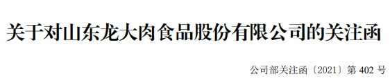深交所提出,请龙大肉食就上述问题做出书面说明,在2021年12月1日前将有关说明材料报送深交所上市公司管理一部并对外披露,同时抄送派出机构。