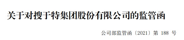 智通财经APP获悉,深交所对搜于特集团股份有限公司(搜于特,002503.SZ)发出监管函。2020年11月16日,搜于特董事会审议同意使用公开发行可转换公司债券募集资金投资项目“时尚产业供应链总部(一期)项目”的闲置募集资金2亿元暂时用于补充流动资金,使用期限自董事会审议批准之日起不超过12个月。2021年11月16日,搜于特披露《关于延期归还闲置募集资金并继续用于暂时补充流动资金的公告》称,因资金紧张、已出现多笔债务逾期等原因,难以将已补流的募集资金按期归还至募集资金专用账户。上述行为违反了相关规定。深交所希望搜于特及全体董事、监事、高级管理人员吸取教训,及时整改,杜绝上述问题的再次发生。
