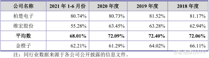 盈利能力方面,金橙子科技于2018-2020年度及2021年上半年分别实现毛利率66.11%、64.02%、61.29%及62.21%,净利率分别为24.75%、17.37%、29.75%及29.66%。