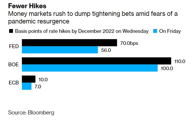 智通财经APP获悉,货币市场削减了对央行加息的押注,因为人们担心,新冠病毒新的变种可能会在全球蔓延,减缓全球经济增长。