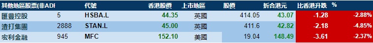 大型蓝筹股多数下跌,汇丰控股收报43.31港元,较港收市跌2.33%;腾讯控股收报462.55港元,较港收市跌0.18%。