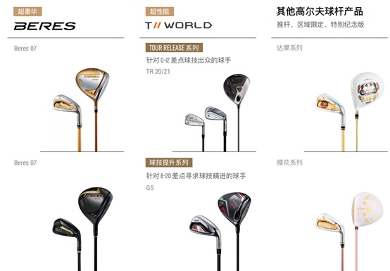 就球杆业务的开拓而言,用“稳中求新”四字形容十分确切,可以说HONMA近年来在开拓更贴近消费者需求的产品上从未停下脚步。凭借强大的研发能力和精湛的日本传统制杆工艺,HONMA的球杆产品主要聚焦在超高端和高性能区间,其中超高端的Beres系列球杆为HONMA六十多年的经典之作,业界一直将Beres视为功能和美感的完美结合;而功能型球杆Tour World则针对热忱型球手,过去一直以球技最佳的单差点球手为目标群体。2019年对市场进行研判之后,管理层认为介于8-20差点的球手对于提升球技的需求最迫切,消费增长也最快速,于是推出了球技提升型产品线,2021年1月推出了该线第二代产品GS,自上市以来受到业界好评如潮,并且通过社交媒体和年轻职业球手进行宣传造势,收获了新的客户群体,在提升销售收入的同时,也更新了品牌在年轻球手中的形象。