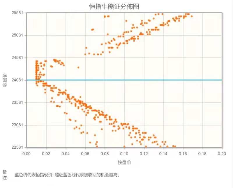 从恒生指数牛熊街货分布情况看,24081点位置,牛证密集,市场处于继续探底阶段。新冠病毒变异株奧密克戎,引发全球股市上周末恐慌性抛售。疫情给经济复苏带来了不确定性,也给联储加息前景带来了不确定性。本周市场对资产价格进行重新定位,恒生指数看跌。
