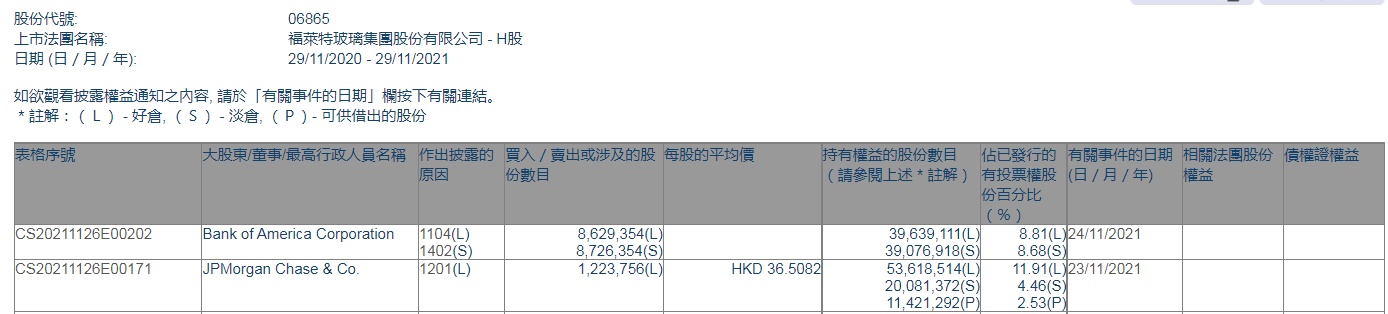智通财经APP获悉,香港联交所最新资料显示,11月23日,小摩减持福莱特玻璃(06865)约122.38万股,每股作价36.5082港元,总金额约为4467.71万港元。减持后最新持股数目约为5361.85万股,最新持股比例为11.91%。
