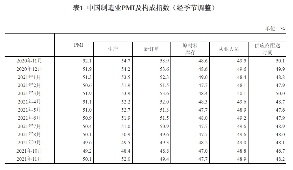 11月份,中国制造业采购经理指数(PMI)为50.1%,比上月上升0.9个百分点,位于临界点以上,制造业重回扩张区间。