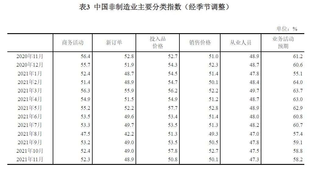 业务活动预期指数为58.2%,比上月下降0.6个百分点,继续位于较高景气区间,表明非制造业企业对近期市场恢复信心总体稳定。分行业看,建筑业业务活动预期指数为58.3%,比上月下降2.0个百分点;服务业业务活动预期指数为58.2%,比上月下降0.3个百分点。