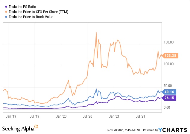 因此,从定价到业绩、现金流和账面价值来看,特斯拉目前的基本估值大约是有史以来最高的。