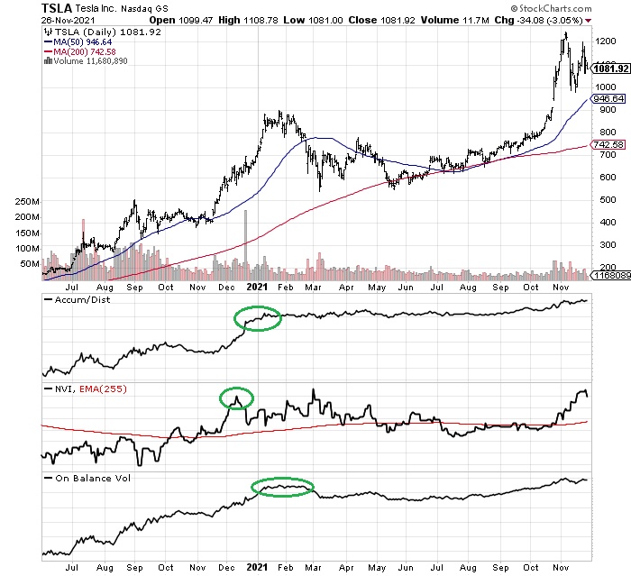 过去18个月里,累积/派发线(Accumulation/Distribution Line)、负成交量指标(Negative Volume Index)和平衡交易量指标(On Balance Volume)这些动量指标都处于明显的上行放缓中。而在2021年的大部分时间里,它们都处于停滞状态。