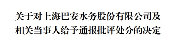 深交所作出如下处分决定:一、对上海巴安水务股份有限公司给予通报批评的处分;二、对上海巴安水务股份有限公司原实际控制人、时任董事长张春霖及其关联方上海捷兰商贸有限公司给予通报批评的处分;三、对上海巴安水务股份有限公司总经理王贤、时任财务总监陈磊、时任财务总监孙颖给予通报批评的处分。