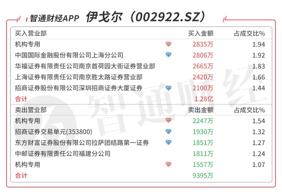 伊戈尔(002922.SZ):多主力现身龙虎榜,机构席位对倒,当日买卖均衡,买五是知名游资的席位买入2100万元,当日净买入2353万元,该股调整充分,今日放量突破20日线强势涨停,压力位在28元附近。