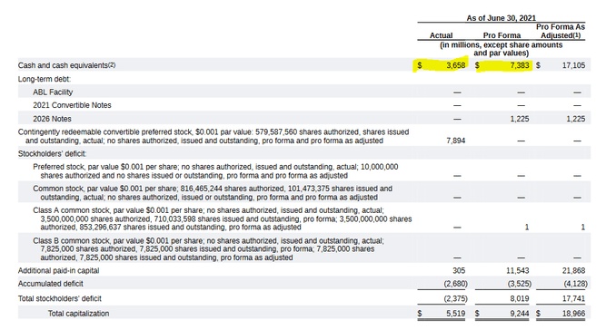 然而,Rivian却不存在这些问题。由于其创纪录的IPO规模(对于一家电动汽车公司而言),该公司的资本状况非常好。在IPO前,Rivian已经拥有相当稳定的现金储备:截至6月底,Rivian拥有37亿美元现金,经认股权证行使和其他因素调整后,该公司上市前现金总额超过70亿美元,这意味着Rivian在上市后持有约180亿美元。
