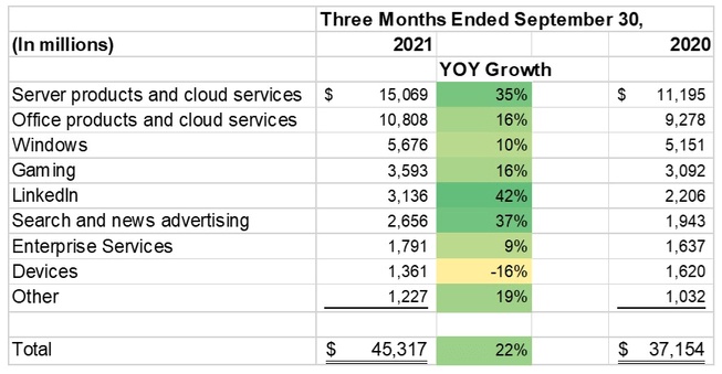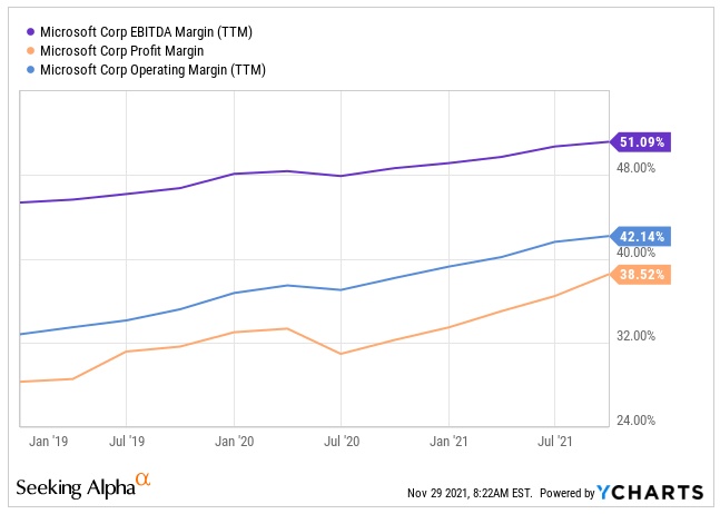 总营收增长也由上年的18%加速至22%。这对长期投资者来说都是非常积极的,正如前面所提到的,微软在利润率方面一直表现出色,本已强劲的表现再次超出了大多数人的预期。