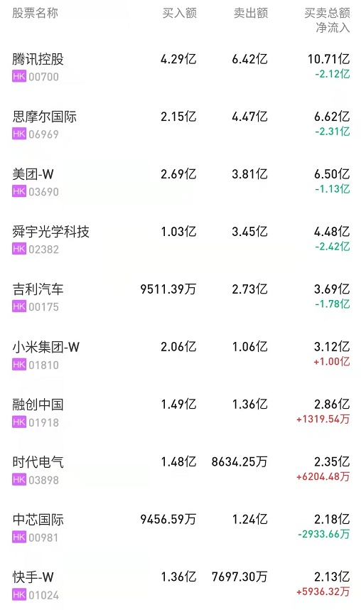 此外,融创中国(01918)获净买入1.31亿港元。而腾讯(00700)、舜宇光学(02382)、中芯国际(00981)分别遭净卖出3.35亿、5835万、2933万港元。