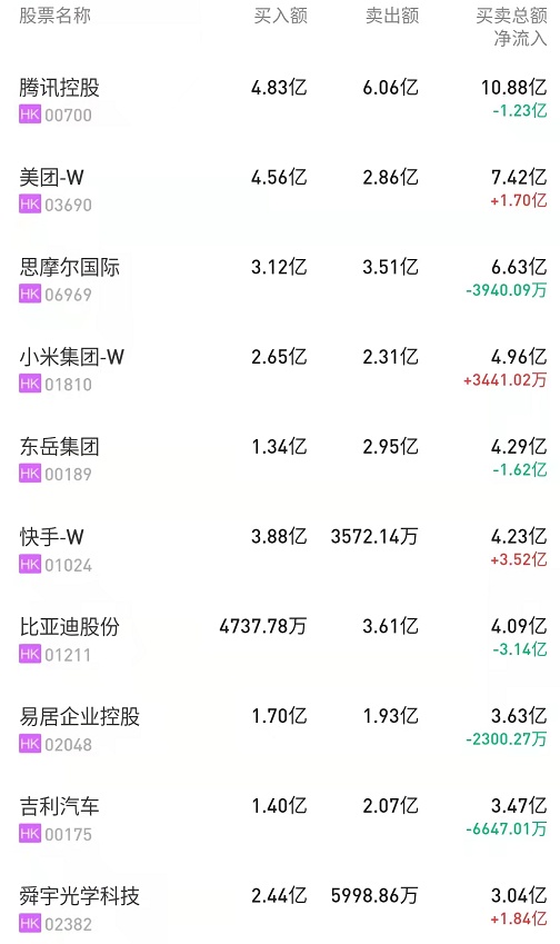 智通财经APP获悉,12月1日港股市场,北水成交净买入16.24亿,其中港股通(沪)成交净卖出3.37亿港元,港股通(深)成交净卖出19.61亿港元。