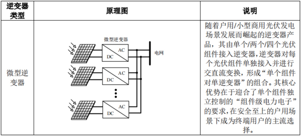 从产业链角度看,光伏逆变器是光伏发电系统的核心设备,光伏组件所产生的直流电需要通过逆变器才能转变为交流电并用于家用电器或并网发电。按照技术路线及功率水平的差异,光伏逆变器又可分为集中式逆变器、组串式逆变器、模块化逆变器和微型逆变器。