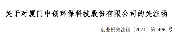 深交所提出,请中创环保就上述事项做出书面说明,在2021年12月7日前将有关说明材料报送深交所创业板公司管理部并对外披露,并抄送厦门证监局上市公司监管处。