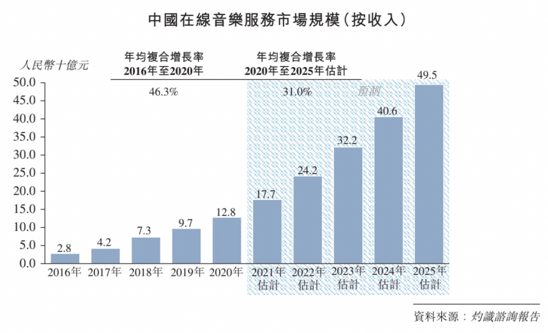 智通财经APP认为,就目前的外部环境来看,对于云音乐而言颇为有利。一方面,就行业容量来看,公司所处的中国在线音乐服务市场仍处于高速发展阶段。据灼识咨询报告,2016年-2020年在线音乐服务市场规模由28亿元增加至128亿元,年均复合增长率高达46.3%。该机构预测,到2025年,在线音乐服务市场规模有望达到495亿元,对应的年均复合增长率仍高达31%。行业增长预期强劲,为云音乐继续兑现高速成长的预期提供了有力的支撑。