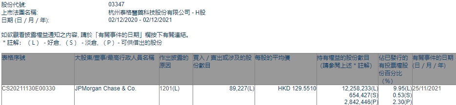 智通财经APP获悉,香港联交所最新资料显示,11月25日,小摩减持泰格医药(03347)8.92万股,每股作价129.551港元,总金额约为1155.94万港元。减持后最新持股数目约为1225.82万股,最新持股比例为9.95%。