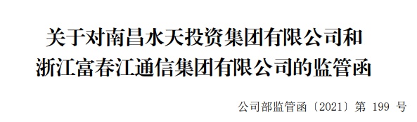 智通财经APP获悉,深交所向南昌水天投资集团有限公司(水天集团)和浙江富春江通信集团有限公司(富春江通信)发出监管函。经查。2020年7月28日,浙江富春环保热电股份有限公司(富春环保,002479.SZ)披露的《关于控股股东签订<股份转让协议>暨控制权拟变更的提示性公告》显示,水天集团和富春江通信签订了《关于浙江富春江环保热电股份有限公司之股份转让协议》,交易完成后,水天集团将成为富春环保的控股股东。2020年9月15日,水天集团和富春江通信签署了《关于浙江富春江环保热电股份有限公司之股份转让协议的补充协议》,但迟至2021年11月30日才就《补充协议》事项进行了补充披露。水天集团和富春江通信未能及时就股权转让的进展情况履行信息披露义务,违反深交所相关规定。深交所希望水天集团和富春江通信吸取教训,及时整改,杜绝上述问题的再次发生。