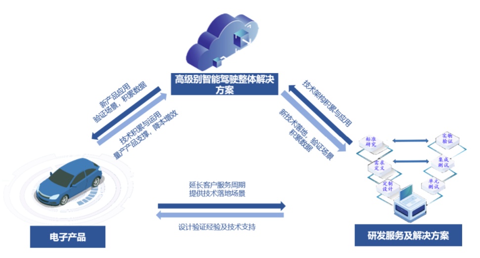 经纬恒润通过电子产品、研发服务和解决方案、高级别智能驾驶整体解决方案业务,已经形成“三位一体”的业务布局,并在核心技术、应用场景、行业客户群等方面互相协助、共同发展。