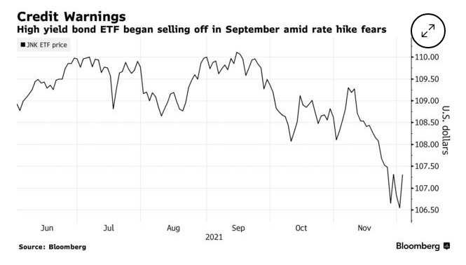 在2021年,随着投资者试图顺应新冠疫情后的经济,各种不同的信号导致市场上出现震荡。在美联储慷慨援助的推动下,看涨的股票投资者一再将各类股票指数推至创纪录高位,而债券市场则由于高通胀的而充斥着悲观的情绪。“最终的问题是,谁是对的——信贷市场还是股市?”现在看来,信贷市场更符合现实,”Lewis在电话中表示。“虽然美联储表示‘我们目前不需要加息’,同时股市屡创新高,但信贷市场的预测则是‘美联储会加息的。”