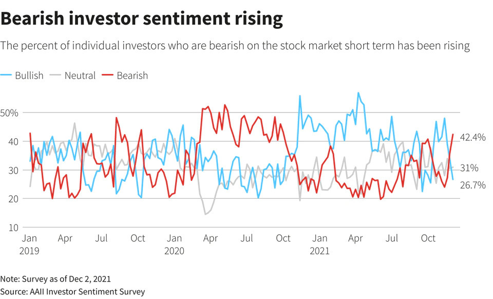 Omicron变种以及美联储可能采取的更激进的举措,正在打压散户投资者的信心。
